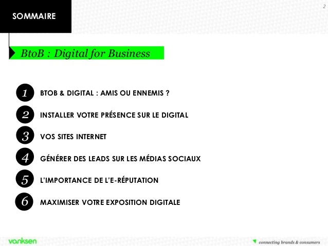 - 2. BTOB & DIGITAL : AMIS OU ENNEMIS ? INSTALLER VOTRE PRÉSENCE SUR LE DIGITAL VOS SITES INTERNET GÉNÉRER DES LEADS SUR LES MÉDIAS SOCIAUX L’IMPORTANCE DE L’E-RÉPUTATION MAXIMISER VOTRE EXPOSITION DIGITALE